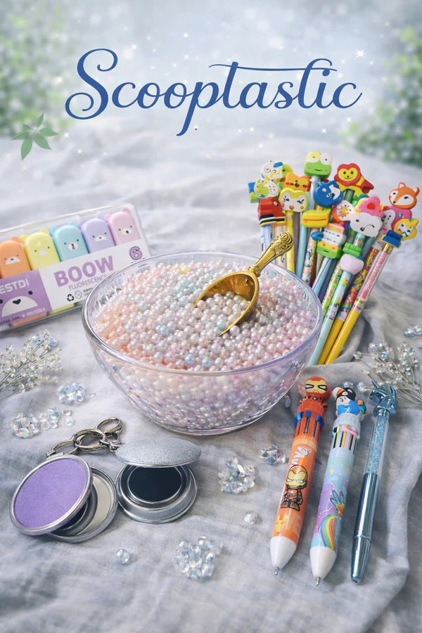Our Scoops are packed with 12–20 surprise items, scooped and selected in a fun, exciting way to create the ultimate unboxing experience! 🎁✨